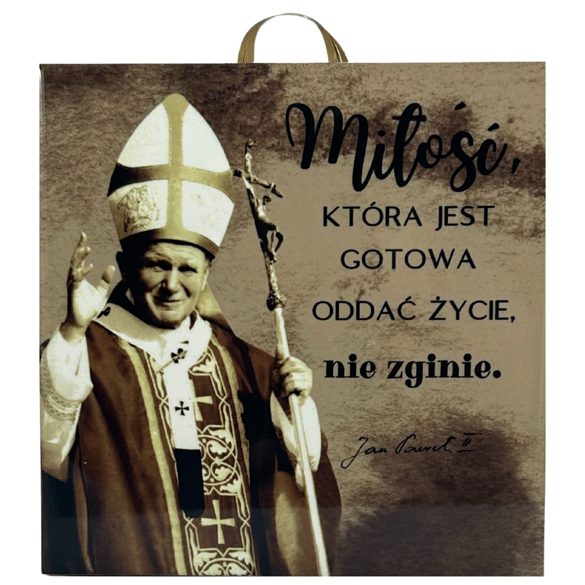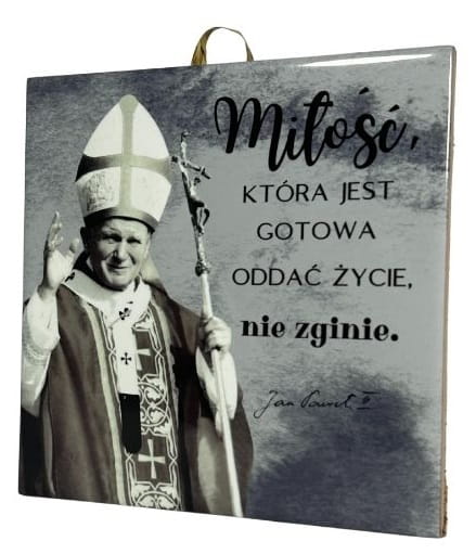Obrazek kafelek - JAN PAWEŁ II "MIŁOŚĆ, KTÓRA.." Wykonany jest metodą nanoszenia.
